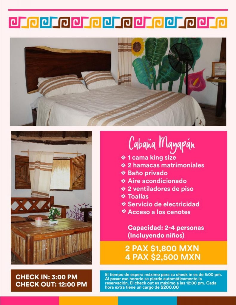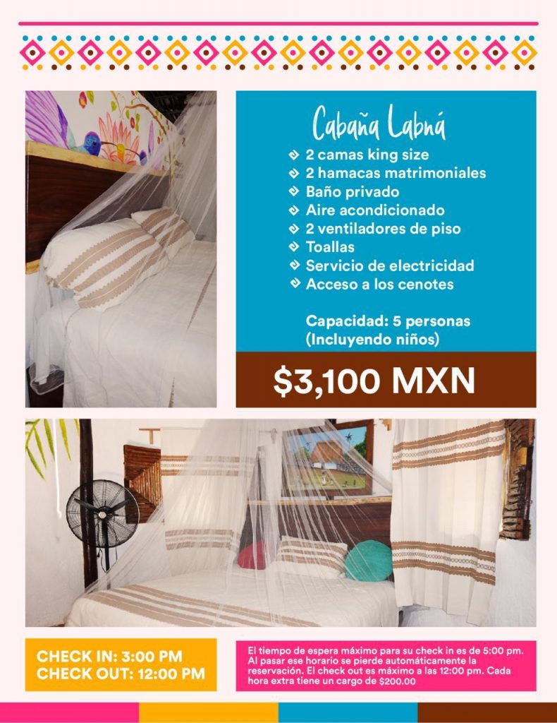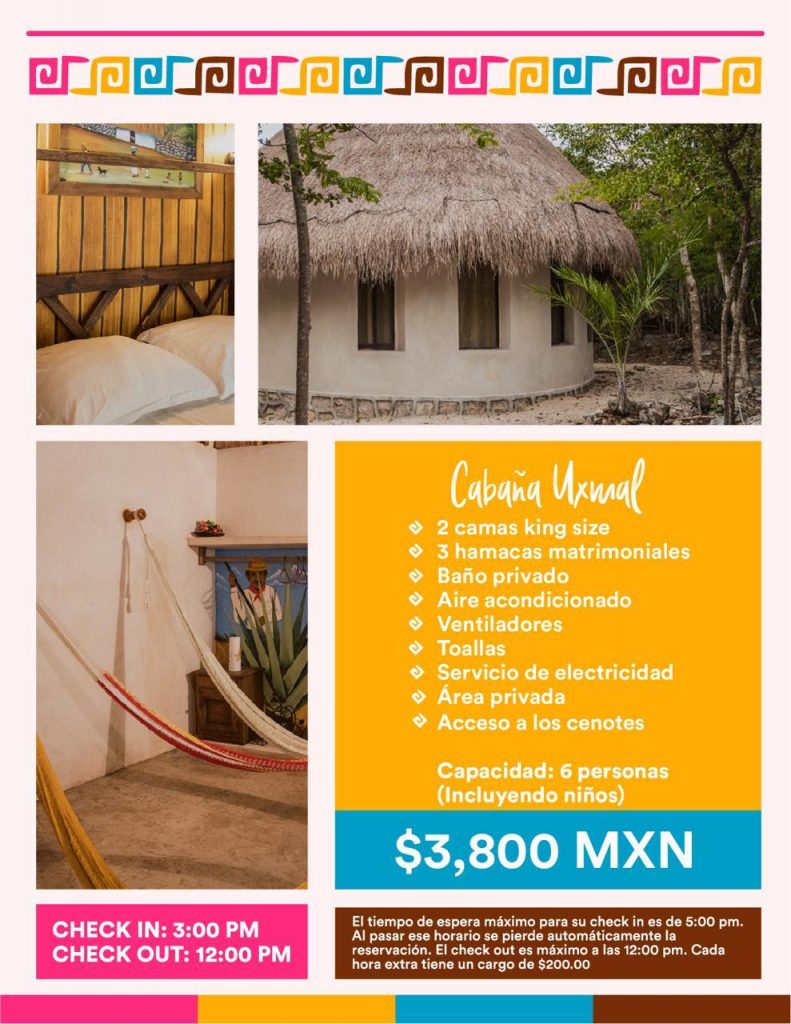 Vive la experiencia completa de Santa Rosa y quédate a descansar en un espacio lleno de naturaleza y cultura. Elije entre los varios tamaños de nuestras hermosas Cabañas Estándar: Labná, Mayapán y Uxmal y la Premium: Mayan Palace. Cada una tiene todas las amenidades que necesitas para tener una estancia óptima, en paz y relajación. Si te gustaría recorrer Homún y explorar la zona, con sus más de 20 cenotes, definitivamente este tipo de alojamiento es la opción perfecta para ti.